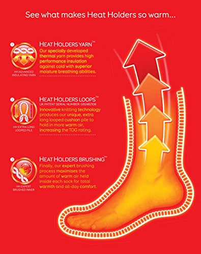 As well as this, the Heat Holders Loops produces a unique pile of cushioning which holds in even more warm air, and keep your feet fully comfortable and supported throughout the long day. These extreme socks have a expert brushing process, causing the inside to be not only sensationally soft, but also helps to maximise the amount of warm air held inside close to the skin making your feet warmer, for longer!