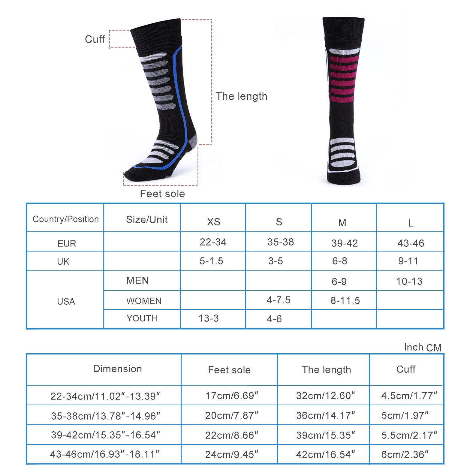 ❄️ VERSTÄRKUNG POLSTERUNG, RUTSCHFESTER BUND & FLACHE ZEHENNAHT – Verstärkte Polsterung im Fussbett und am Schienbein stützt den Fuß und entlastet das Fußgewölbe. | Der elastische Bund im Mittelfußbereich bietet zusätzliche Gewölbestützung und hält die Socken den ganzen Tag an ihrer Stelle. | Praktisch nahtlose Zehen bieten außergewöhnlichen Tragekomfort.