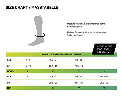KLIMAREGULATION – Die Compressionssocks sind aus Hightech-Materialien gefertigt. Dank atmungsaktiver Fasern im Strumpf entsteht kein oder übermäßiges Schwitzen und sorgt für einen unverwechselbaren Wohlfühlfaktor