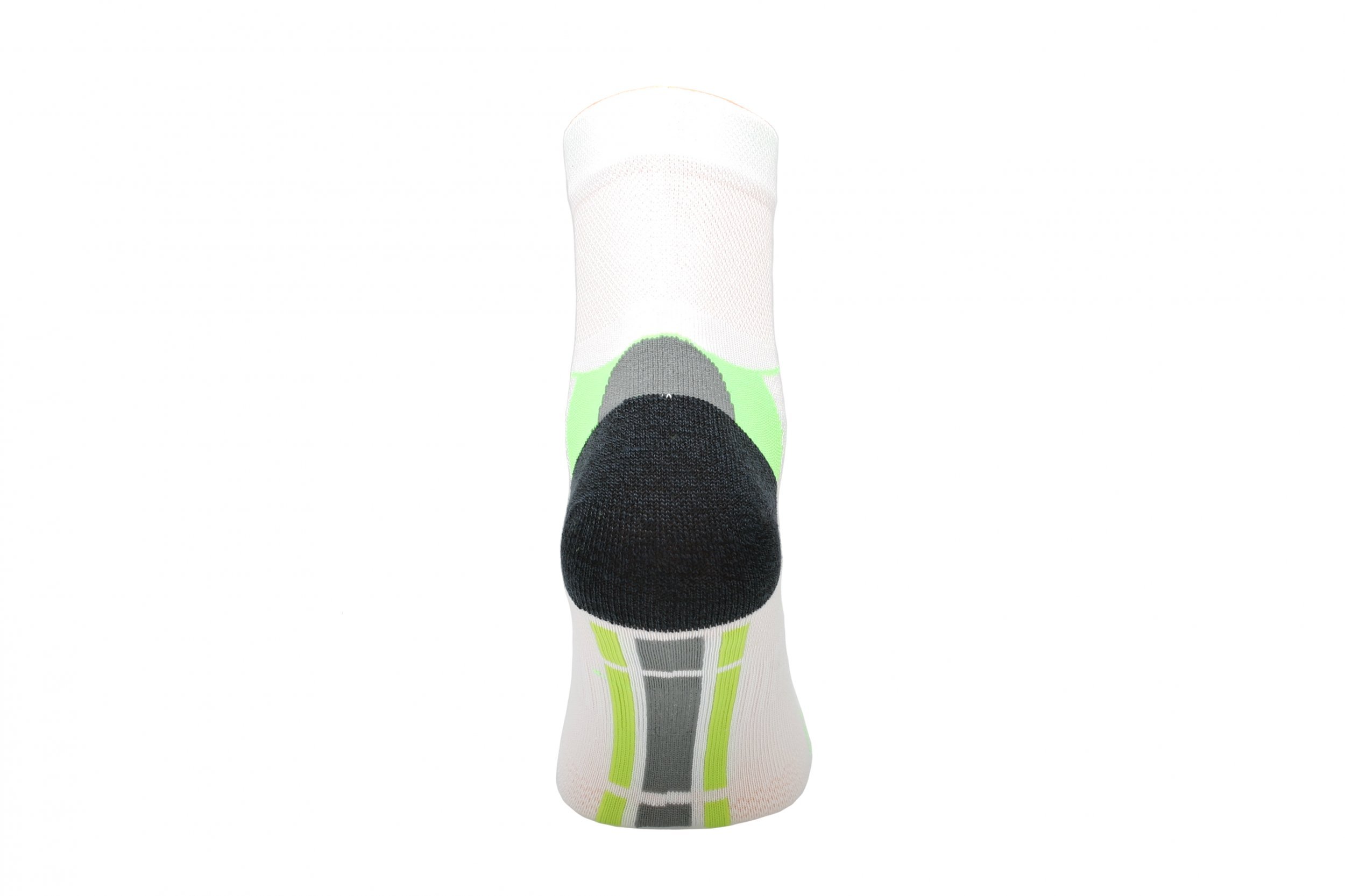Spezielle Konstruktion um den Knöchel und entlang des Fußes, sowie eine verstärkte Zone im Mittelbereich der Fußsohle verhindern ein Bewegen und Drehen der Socke zur Seite und halten sie in optimaler Position.