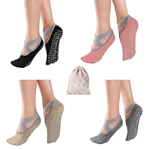 TENGYIF 4 Paar Utschfeste Yoga-Socken für Frauen,
