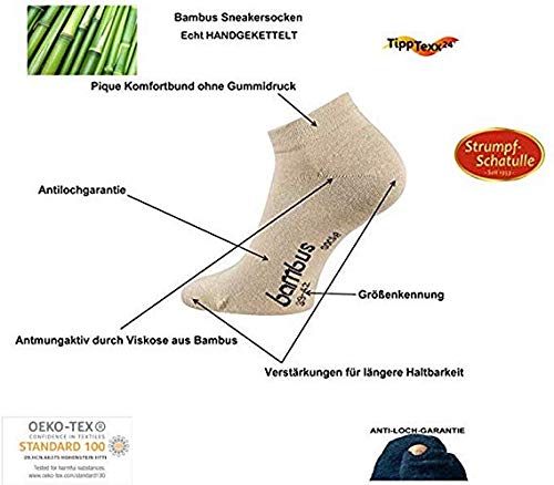 TippTexx 24 12 Paar Sneaker-Bambussocken mit Anti-Loch-Garantie,Ökotex,