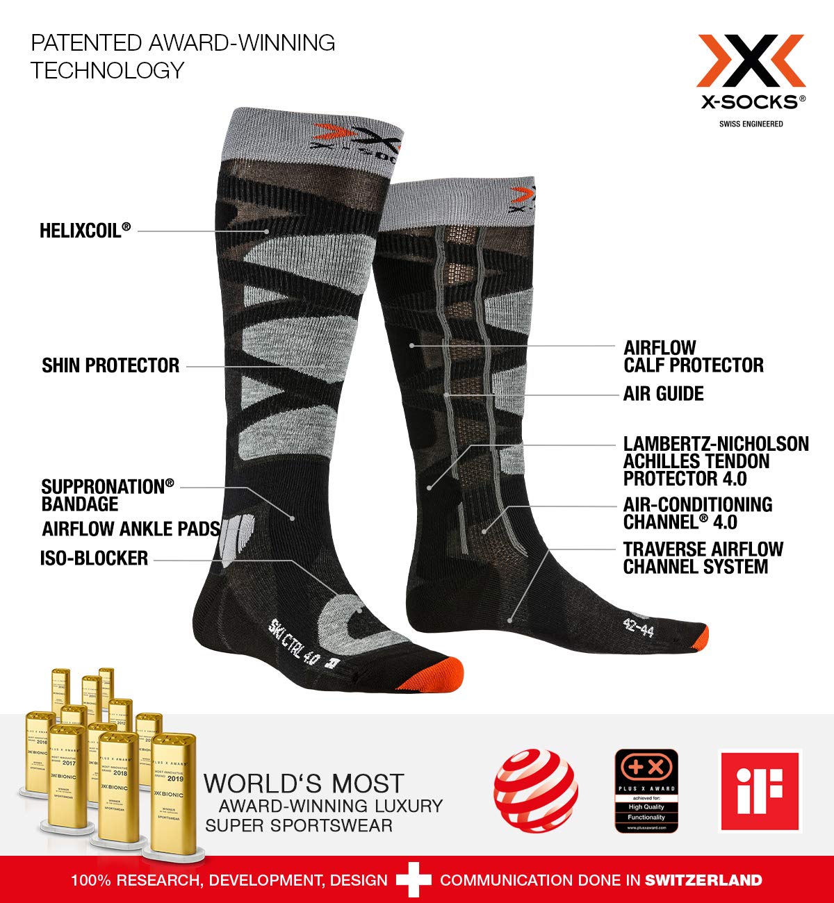 100% Forschung, Entwicklung, Design und Kommunikation in der Schweiz.Hergestellt in Italien . Mehr als 600 Auszeichnungen und Testsiege, weltweit über 800 Patentanmeldungen für X-BIONIC.